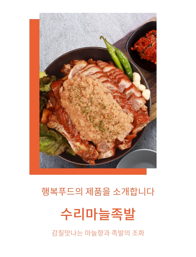 -개인정보취급방침 본 개인정보취급방침은 당사가 본 사이트에서 수집한 정보를 활용하는 방식을 알려주고 있습니다. 본 사이트를 이용하거나 개인정보를 제출하기 전에 본 개인정보취급방침을 읽어보시기 바랍니다. 본 사이트의 활용은 귀하가 본 개인정보취급방침에 명시된 규정에 동의함을 의미합니다. 본 규정은 변경될 수 있으며 변경된 규정은 전부 게시됩니다. -수집하는 개인정보 항목 귀하가 자발적으로 제출하는 경우, 당사는 성명, 주소, 이메일 주소와 같은 개인 식별 정보를 개별적으로 수집하고 있습니다. 개인정보를 당사에 제공하기로 결정할 경우, 귀하는 당사의 서버에 본 정보를 이전, 저장하는데 동의하는 것입니다. -정보의 배포 당사는 부정 사용 예방 또는 조사에 도움을 주는 정부 기관 또는 타사와 정보를 공유할 수 있습니다. (1) 법률이 허용 또는 필요한 경우 (2) 실제 또는 잠재적 부정 행위나 승인 받지 않는 거래를 예방하기 위해서 (3) 이미 발생한 부정 행위를 조사하는 경우, 정보를 공유할 수도 있습니다. 이 정보는 타사의 마케팅 용도로 제공할 수 없습니다. -계정 보호 이름과 연락처는 이지홈피 서비스 계약 후 당사가 고객에게 제공하는 정보입니다. 이 정보는 귀하의 이지홈피 서비스 고객작성용 기초자료 문서 작성에 대단히 중요합니다. 이 정보를 타인에게 공개하지 마십시오. 귀하가 개인정보를 타인과 공유할 경우, 귀하의 이름으로 행한 모든 행위에 대해 귀하가 책임을 져야 한다는 사실을 명심하십시오. 비밀번호를 관리할 수 없을 경우, 귀하는 실제로 개인 정보에 대한 관리도 할 수 없으며 귀하를 대신해 행해진 행동에 대해 법적으로 책임을 져야 할 수도 있습니다. 따라서, 이유 여하를 막론하고 비밀번호가 노출이 된 경우, 비밀번호를 변경하시기 바랍니다. -보안 귀하의 정보는 당사의 서버에 저장되어 있습니다. 당사는 데이터를 보호해야 할 자산으로 취급하고 있으며 개인 정보의 승인 받지 않은 접속 및 공개를 예방하기 위해 다양한 도구(암호, 비밀번호, 물리적 보안 등)를 사용하고 있습니다. 당사는 귀하의 프라이버시를 보호하기 위해 최선의 노력을 다하고 있지만 귀하의 개인 정보 또는 개인 통신이 항상 기밀 사항으로 남아 있다고 당사는 약속 드릴 수 없으며 또한 귀하는 이를 기대할 수 없습니다. -개인 정보 관리 책임자 정통부 시행 개인정보 보호지침(제 22조 1항)에 의거 관리책임자를 아래와 같이 지정합니다 개인정보취급방침에 대한 질문, 용무 또는 의견이 있으시면 아래의 정보를 활용해서 당사에 연락을 주시기 바랍니다. 업체명 : 행복푸드 개인정보 담당자 : 라혜화 연락처 : 1899-7250 당사는 본 개인정보취급방침을 변경할 권한을 갖고 있으며 변경사항은 전부 게시됩니다.